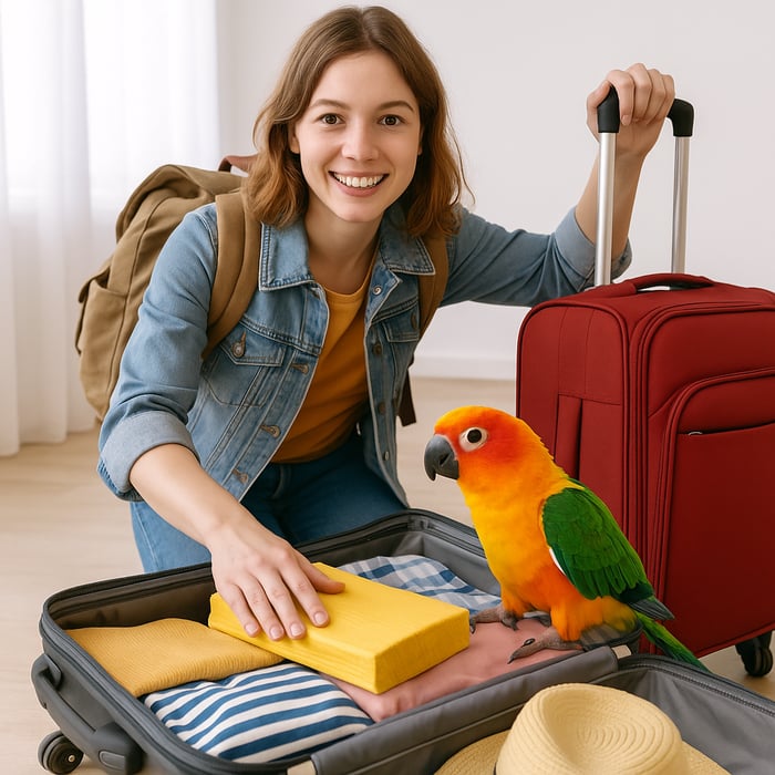 If you're driving, set up the car before the bird gets inside. Keep the cage on a level surface, never on your lap or dashboard. Remove swings or hanging toys — they’ll swing and spook the bird. Keep the temperature stable, avoid blasting music, and speak gently while driving. Cover the cage loosely to reduce visual stress without cutting airflow. Stop regularly, but don’t open the cage outside. A panicked bird is faster than you.