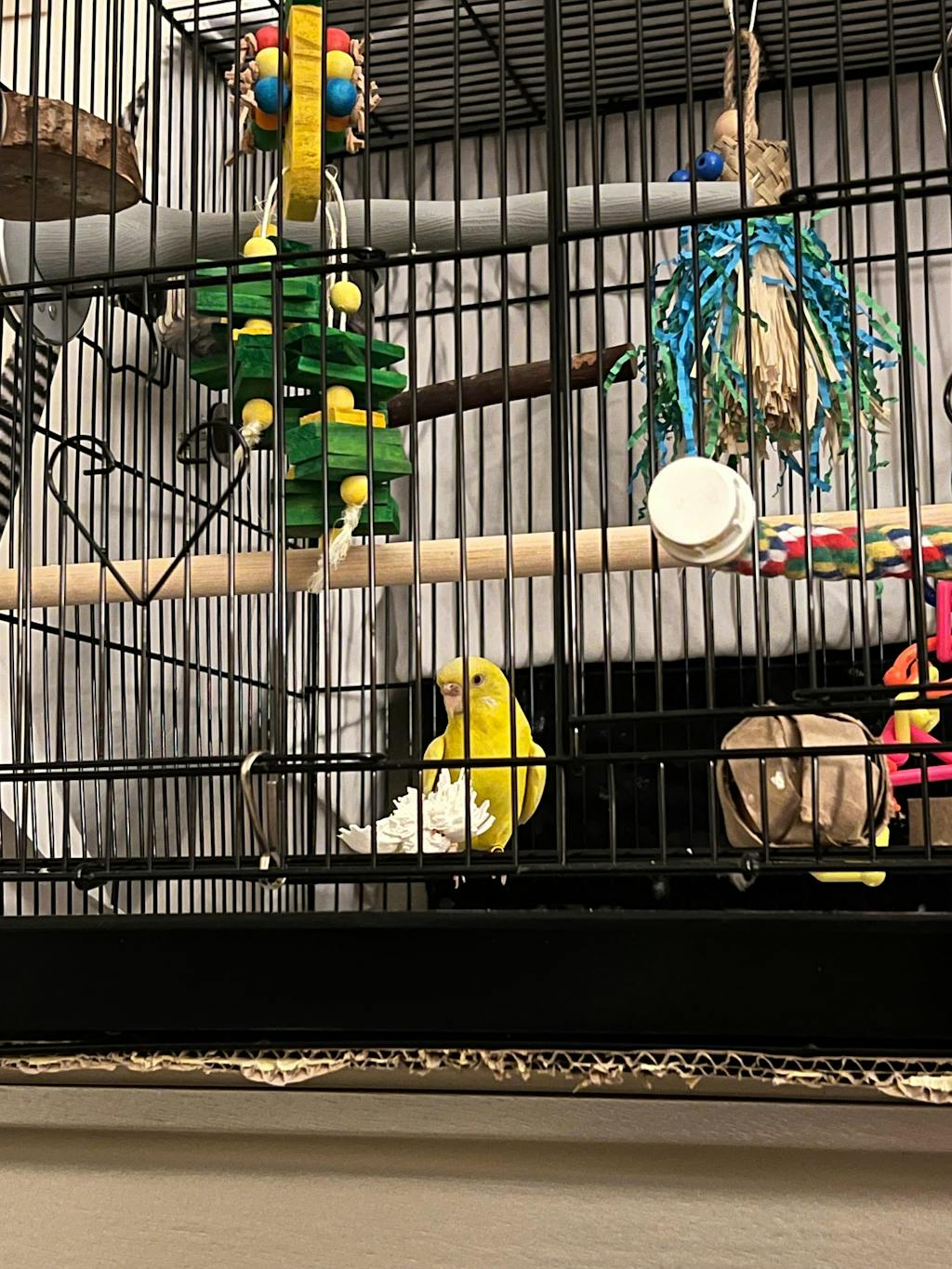 I just love these stars and all the natural undyed woven vine toys sold by M & M Bird Toys. They are 100% safe and free of dyes and chemicals. I hang and assemble them in different ways, and Snowy just loves them!