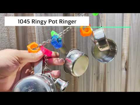 Ringy Pot Ringer 1045 từ M&M Bird Toys là một bữa tiệc ly kỳ về chim siêu ồn ào và bền bỉ! Đồ chơi cỡ vừa này có cốc đo bằng thép không gỉ sáng bóng, vòng acrylic nhiều màu sắc xinh xắn và chuông kim loại ồn ào.