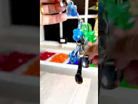 Ở đầu đồ chơi có một đầu nối liên kết nhanh kích thước nhỏ. Điều này làm cho việc treo cổ nhanh chóng trong chuồng chim. Từ đây treo một chiếc nhẫn chắc chắn có một chiếc chuông nhỏ bằng kim loại và chú cá heo lặn bằng acrylic. Con cá heo nằm lỏng lẻo trong vòng và không thể tháo rời khiến nó trở nên cực kỳ hấp dẫn đối với vật nuôi khi chơi cùng. Bất cứ lúc nào cá heo được tương tác với những chiếc chuông kim loại sẽ tạo ra những âm thanh vui tai. Một chuỗi liên kết chắc chắn treo từ vòng này và tiếp tục đi xuống tâm đồ chơi. Chuỗi liên kết này có (2) vòng kim loại bổ sung được treo trên nó với một ở giữa và một ở cuối. Vòng kim loại ở trung tâm có (2) núm vú giả bằng acrylic tuyệt đẹp và chiếc thìa đong bằng thép không gỉ treo lủng lẳng. Vòng ở phía dưới có treo một con cá heo lặn khác và chiếc thìa đo bằng thép không gỉ.